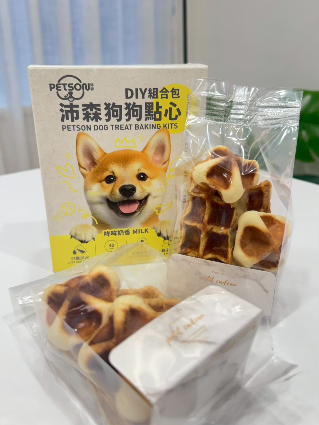 三款點心陸續出爐——訓練小零食、狗鼻子鬆餅、大格子鬆餅。這一刻,「點心」已不只是零食,而是一份凝結愛的陪伴。