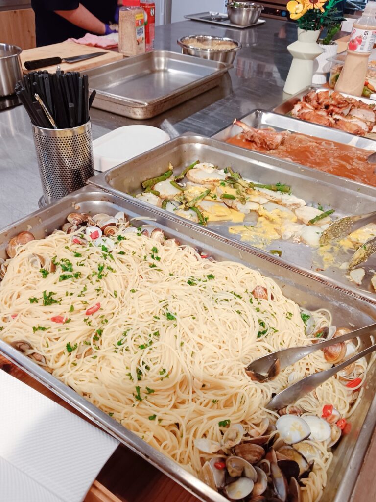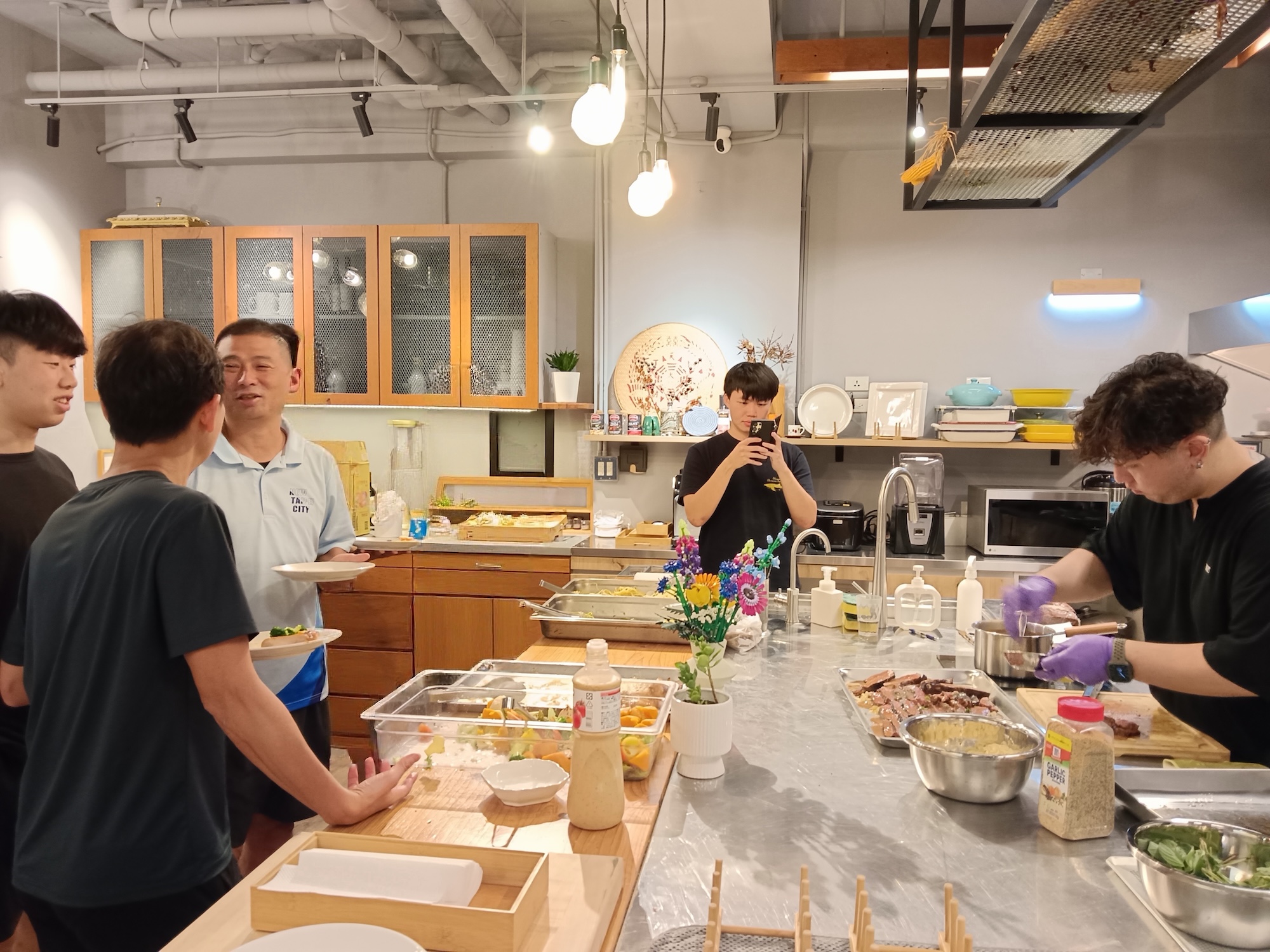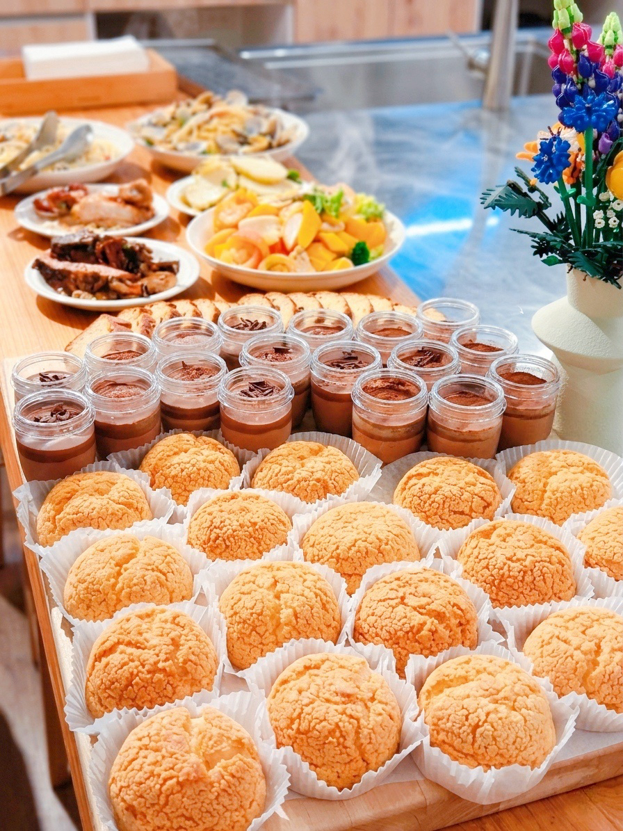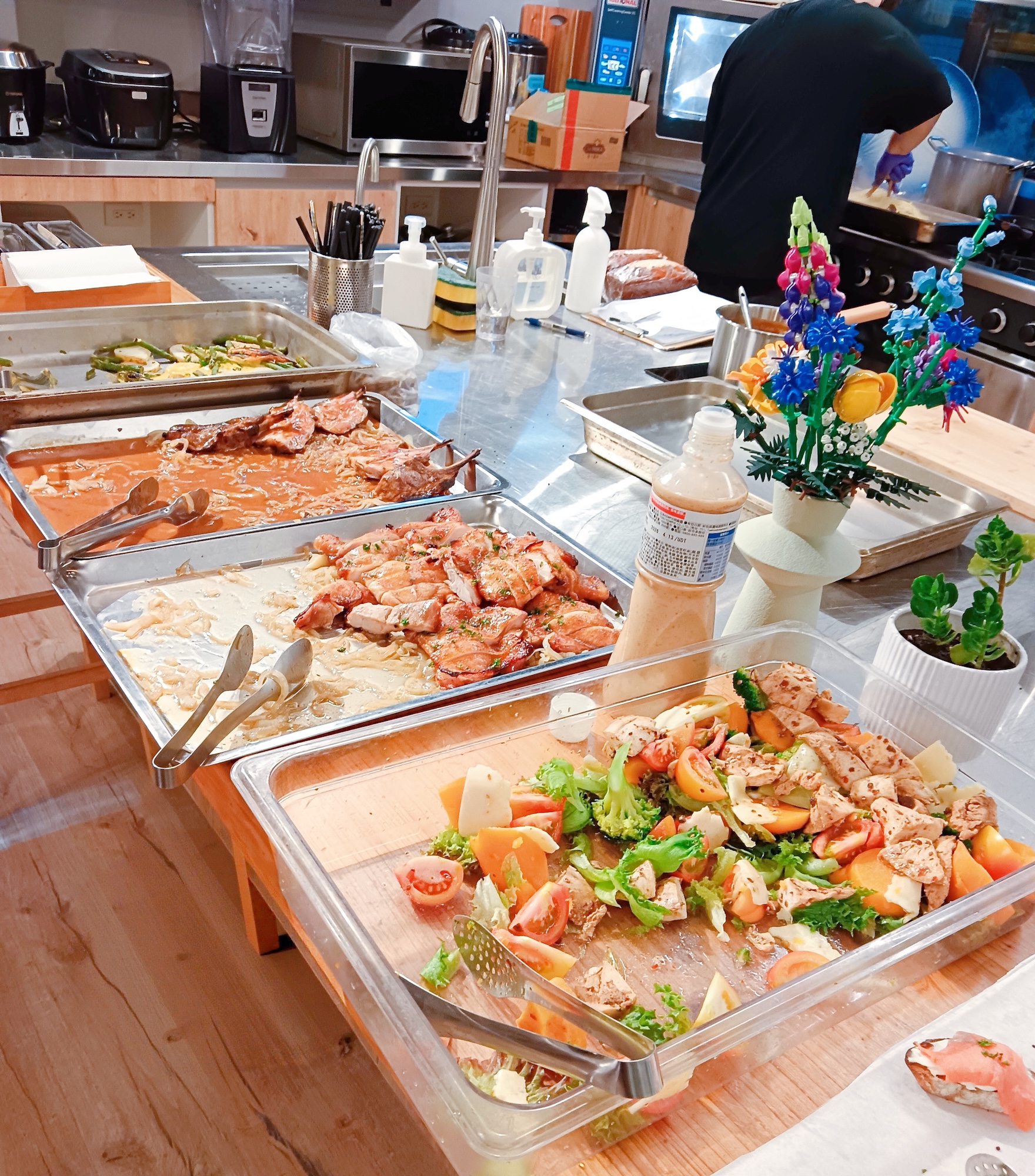 團隊夥伴們共同討論餐點內容與用餐形式,最終以自助Buffet方式呈現,讓大家能自在取用、自由交流。