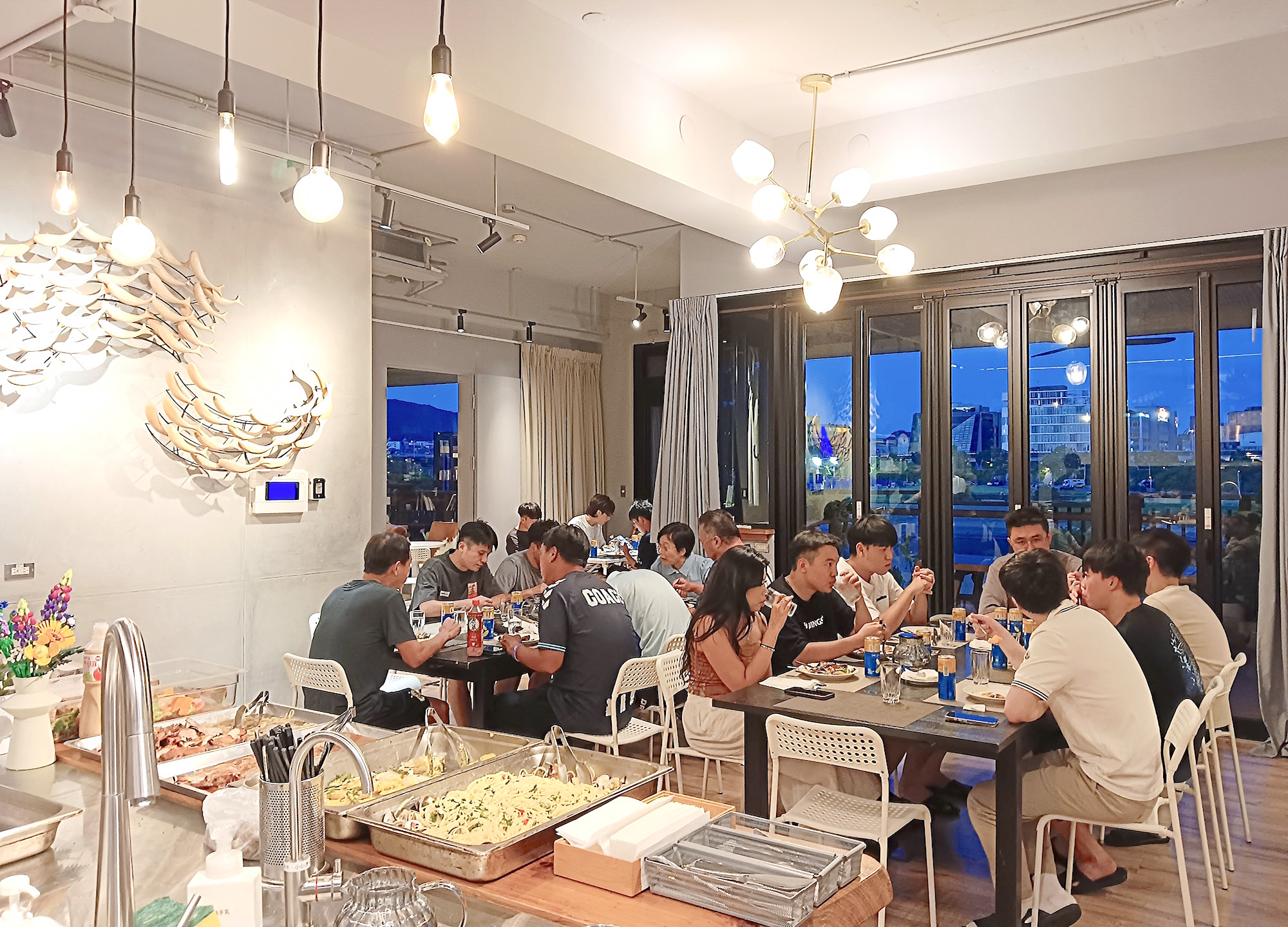 對於經常舉辦運動活動的社團來說,找到一個能在 運動後梳洗、接著直接聚餐的完整空間 並不容易,而河岸蘭亭,正好滿足了這群球友的需求。